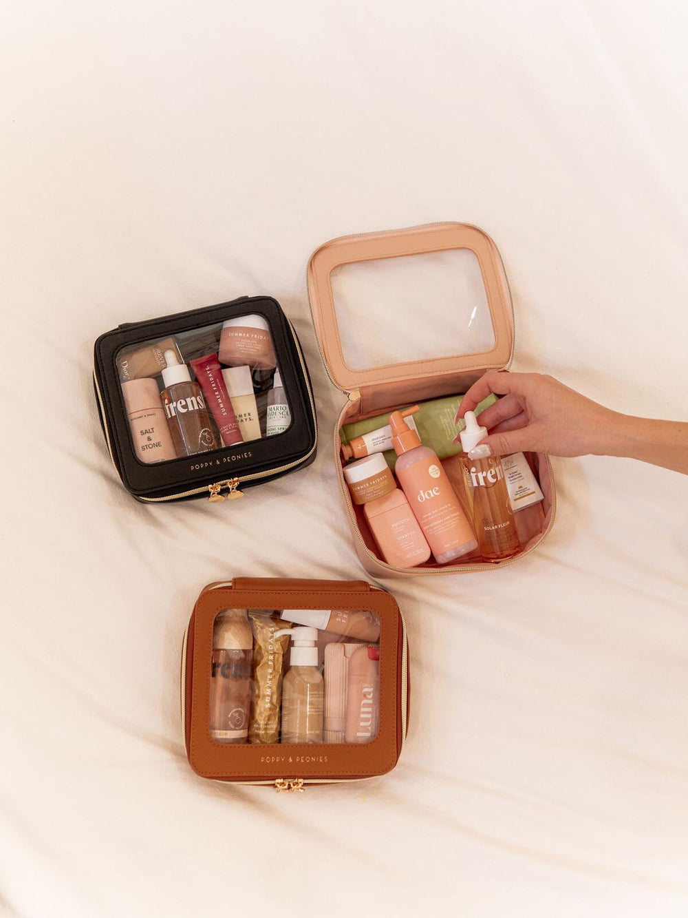 Keep your belongings in clear view with this stylish cosmetic case. Our "Peek A Boo Pouch" cosmetic is great travel or toss it into your everyday bag to store all your lotions and potions the go.