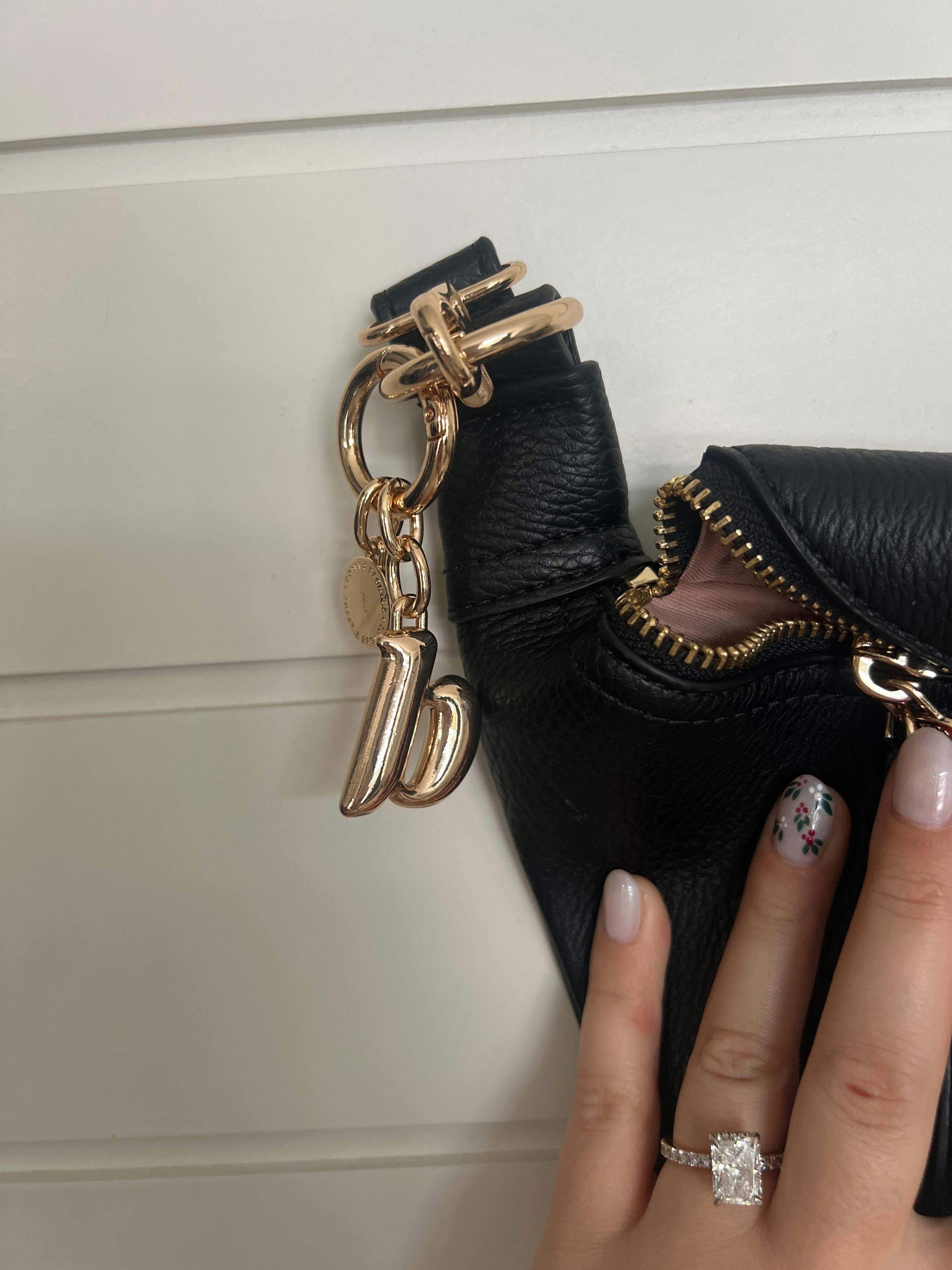 Personalize any bag with your custom initials. Featuring a metal o-ring, this bag charm easily links onto other charms for a layered, custom look and also doubles as a keychain.