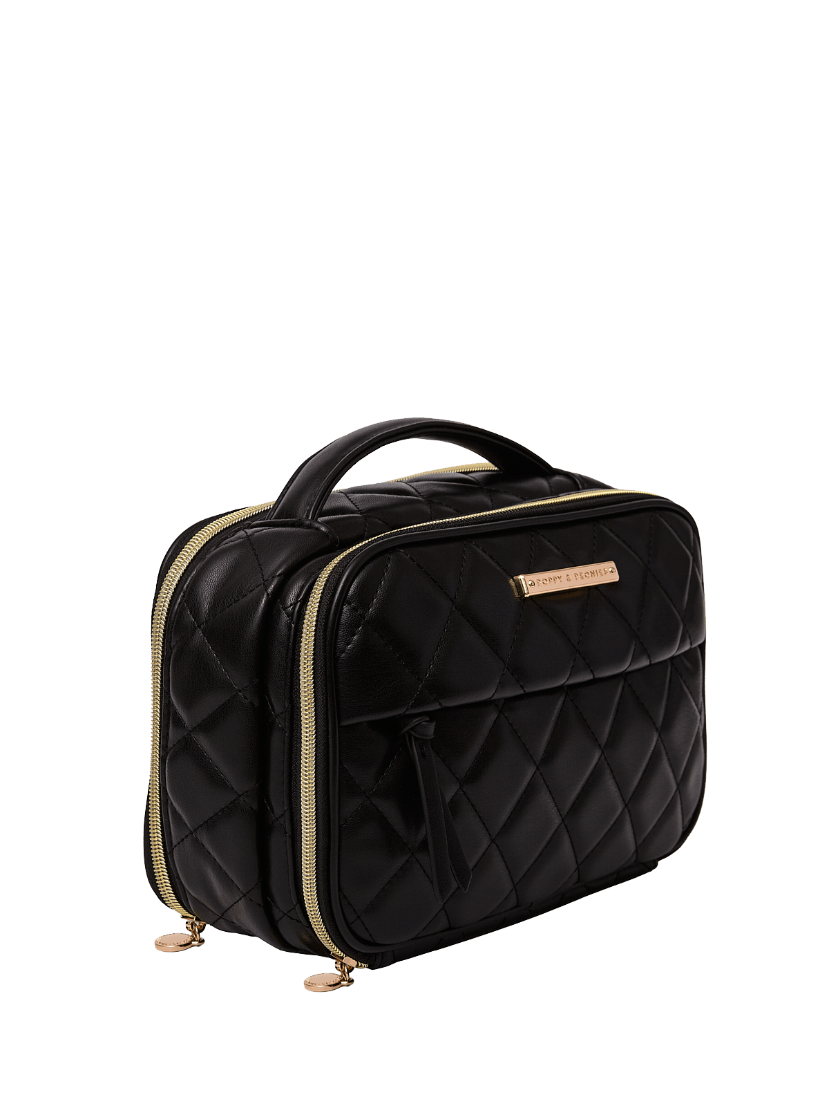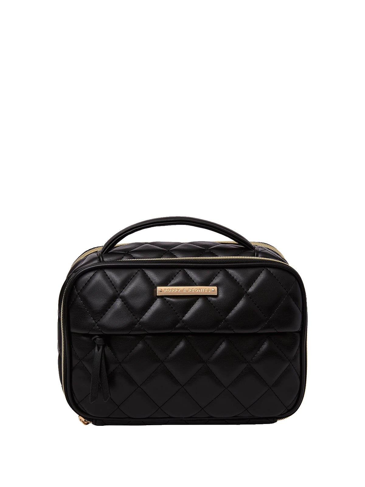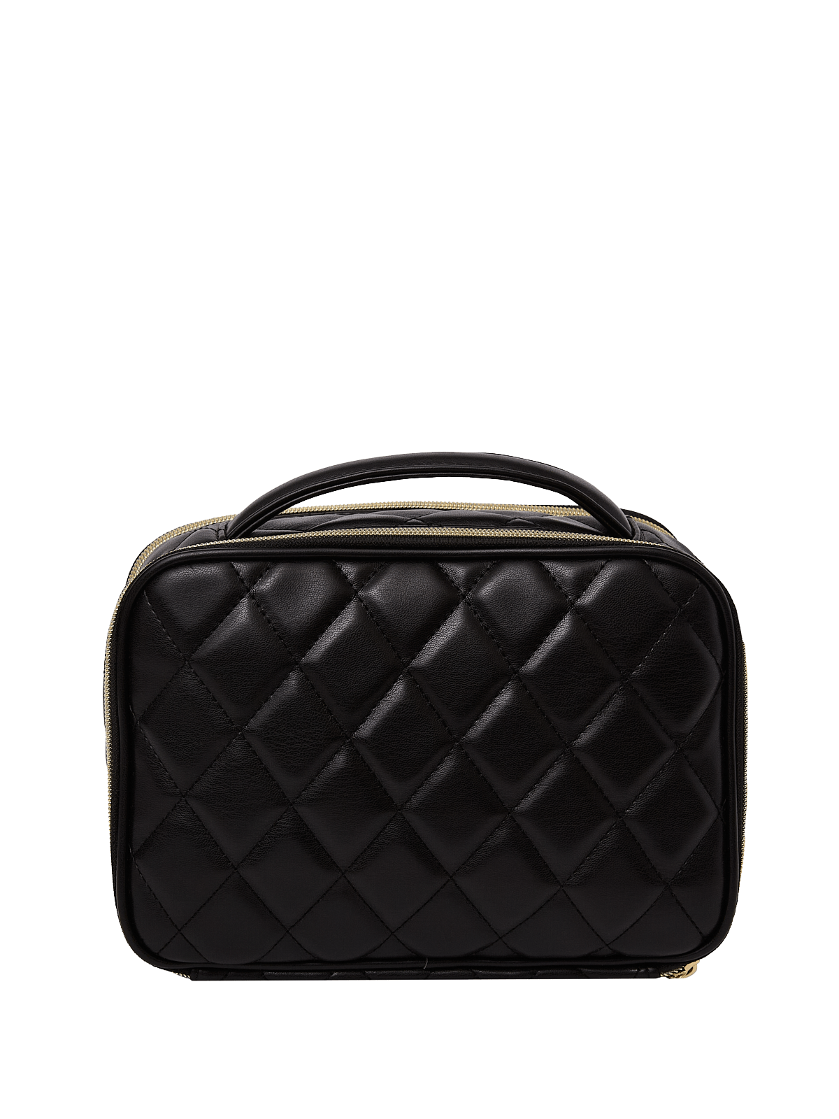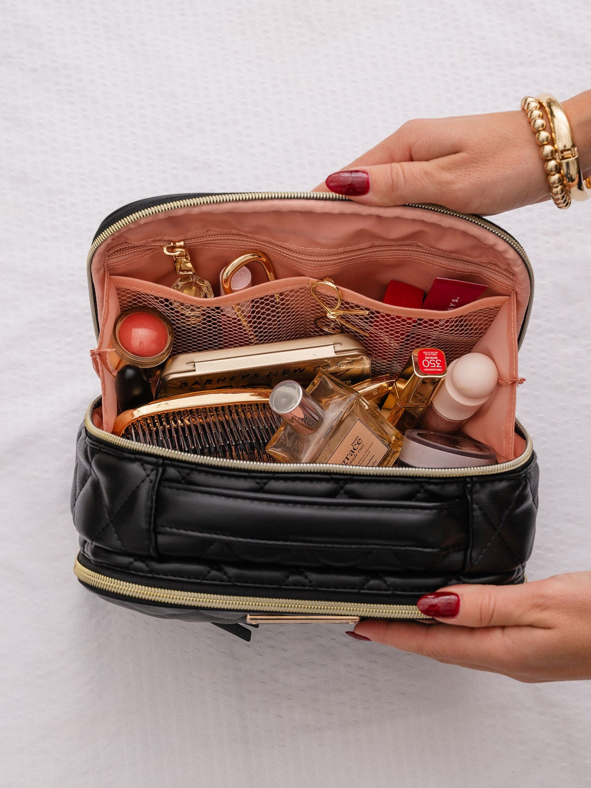 Practical, pretty, and oh-so-organized! With two separate compartments, one for your cosmetics and one for your jewelry, you get the perfect companion all in one case. The main compartment has plenty of room for all your lotions and potions, and features a wipeable lining, mesh pockets and a zipper pocket. The front compartment is a jewelry case with dedicated spots for your rings, necklaces, and delicate items, all kept safe with a zipper pocket. This is the beauty bag your holiday glam routine has been waiting for!