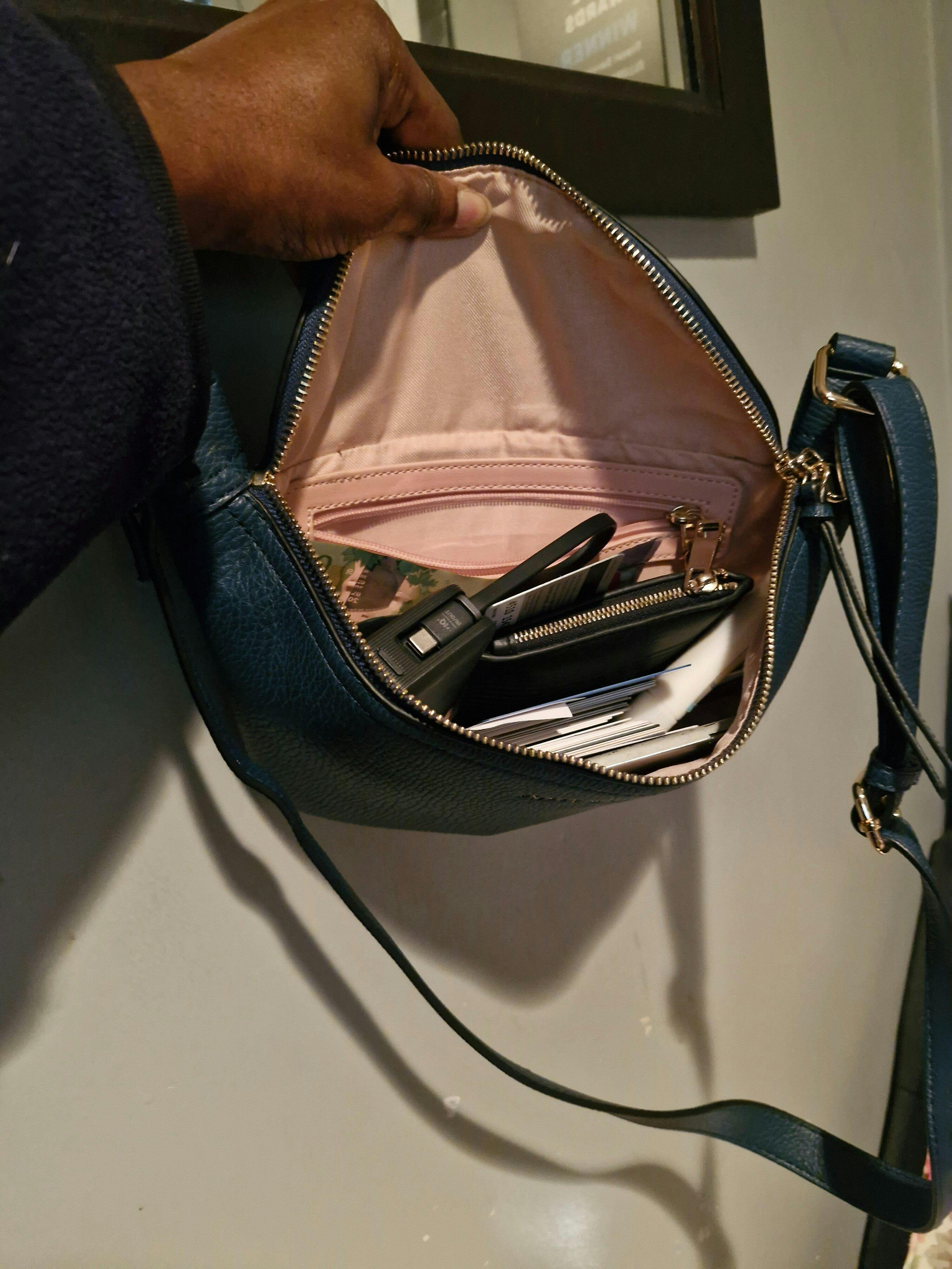 With two ways to wear it and an interior key leash, The Sidekick features interior credit card slots, a full zip closure, a back zip pocket, and a tassel zipper pull.
