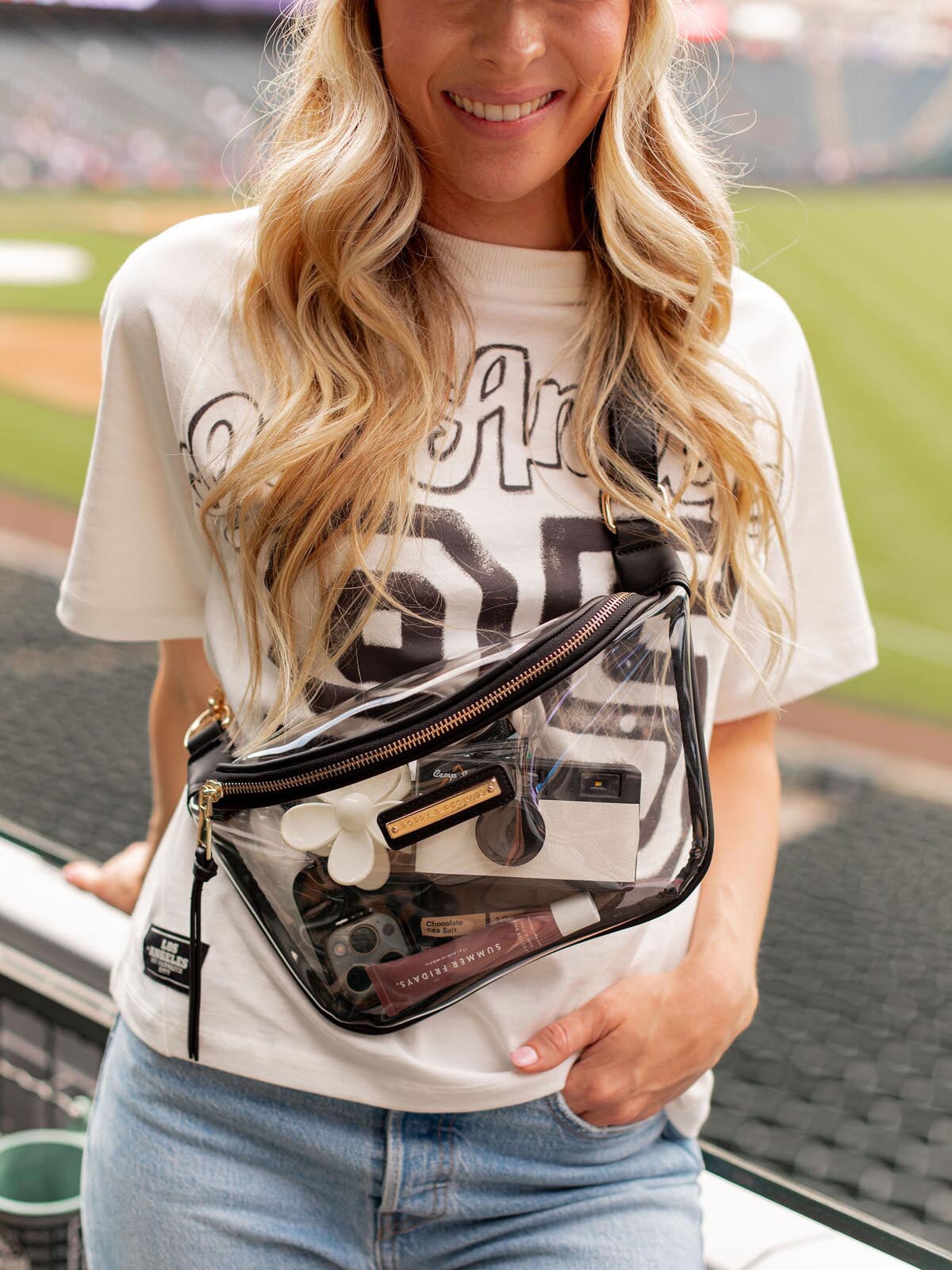 Everything you know and love about our bestselling Sidekick, but stadium-approved. The Stadium Sidekick features a transparent design that meets stadium regulations while ensuring your belongings stay in sight. Features an adjustable size inclusive strap can be worn around the waist or across the chest, letting you find your perfect fit. The roomy interior offers ample space for essentials like your wallet, phone, keys, and lip balm, and the top zip closure keeps everything secure plus three built in credit card slots.