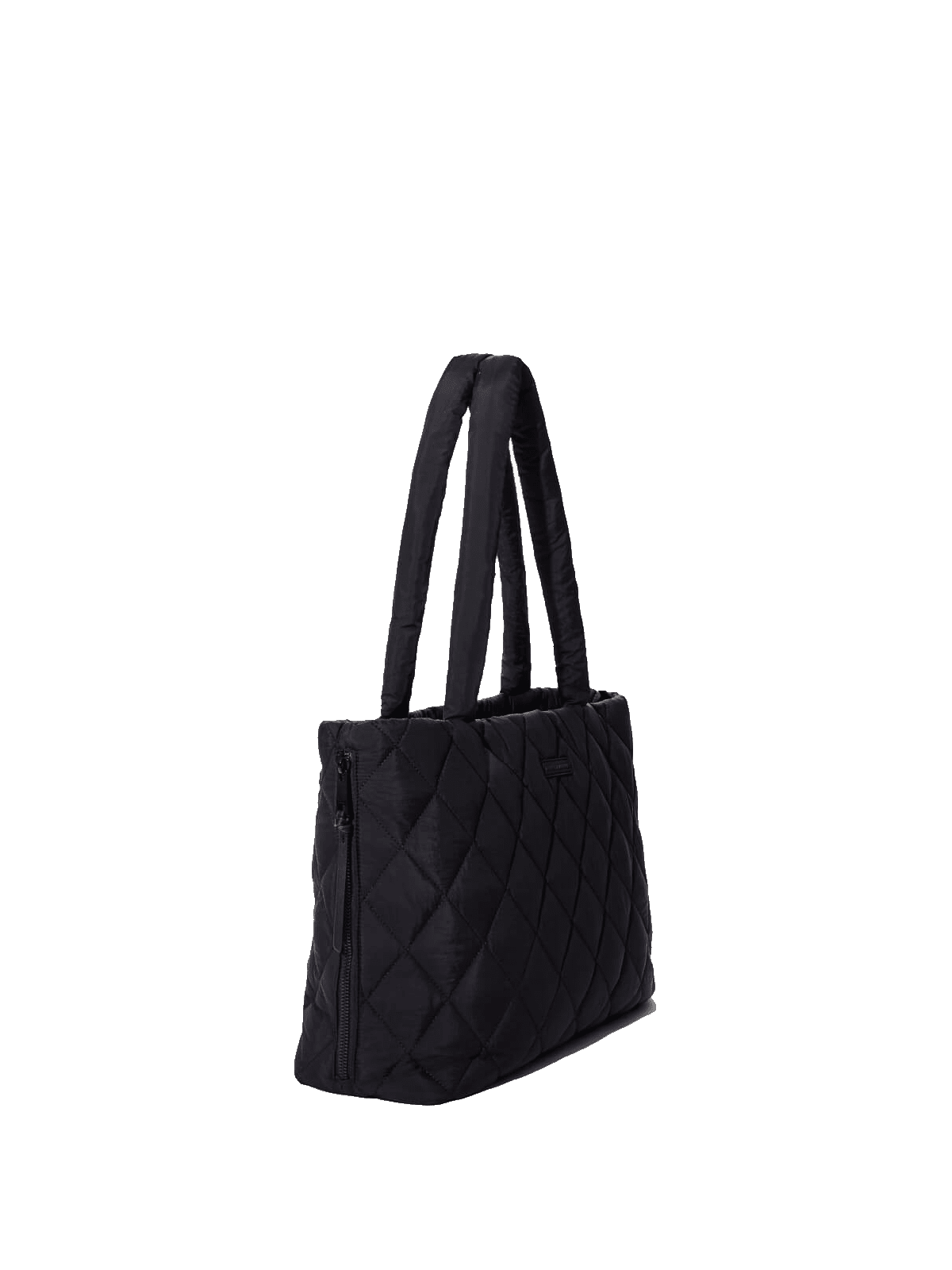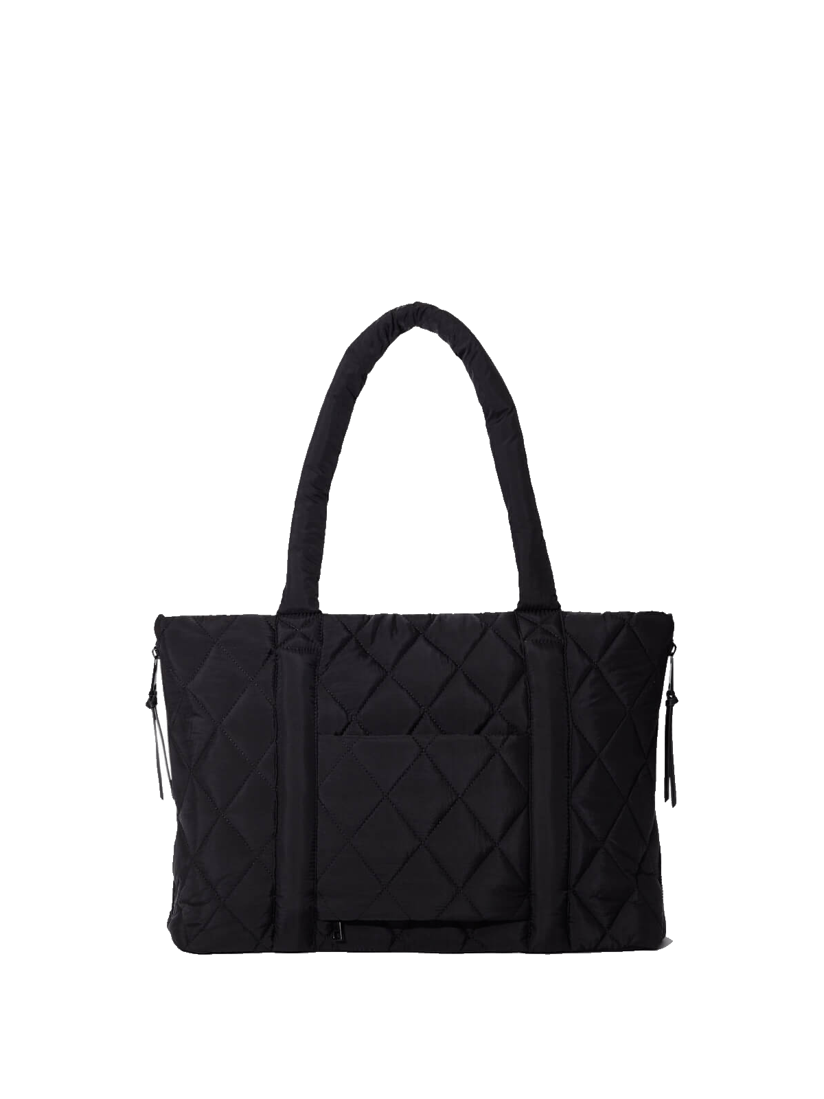 The bigger the bag, the greater the possibilities. From long days at the office to spontaneous weekends away, the plentifully proportioned Tote It is up for anything. Its 16.5 inch laptop sleeve, Stanley water bottle pockets, and key leash make it an ideal all-in-one for your workweek. Out of office? Ditch the laptop compartment for extra space, and use the built-in trolley sleeve to navigate your travel plans with ease. Sneaky side zipper pockets give you even more storage when you need it. Crafted in quilted washed nylon with tonal hardware.