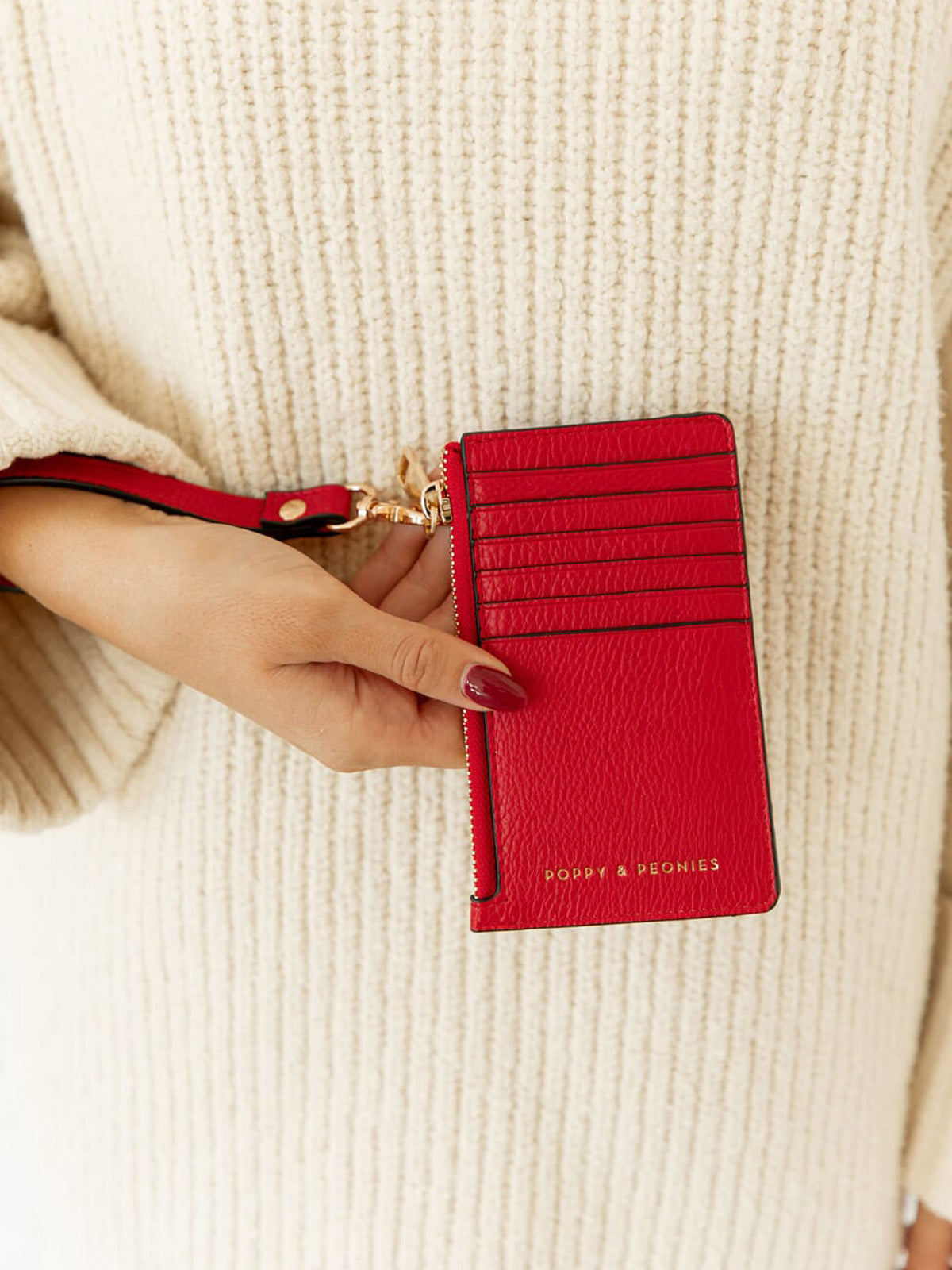 Introducing our stylish card holder with a convenient wristlet strap! This compact accessory is perfect for keeping your essentials organized while on the go. Features six card slots to securely hold your credit cards, top zippered pocket, and a back slide pocket for all your cash and receipts. The detachable wristlet strap allows for easy carrying, making it ideal for errands, outings, or nights out. With a sleek design and a variety of colors, this card holder adds a touch of elegance to your everyday look while ensuring your valuables are always within reach. Perfect for those who appreciate functionality without compromising on style!
