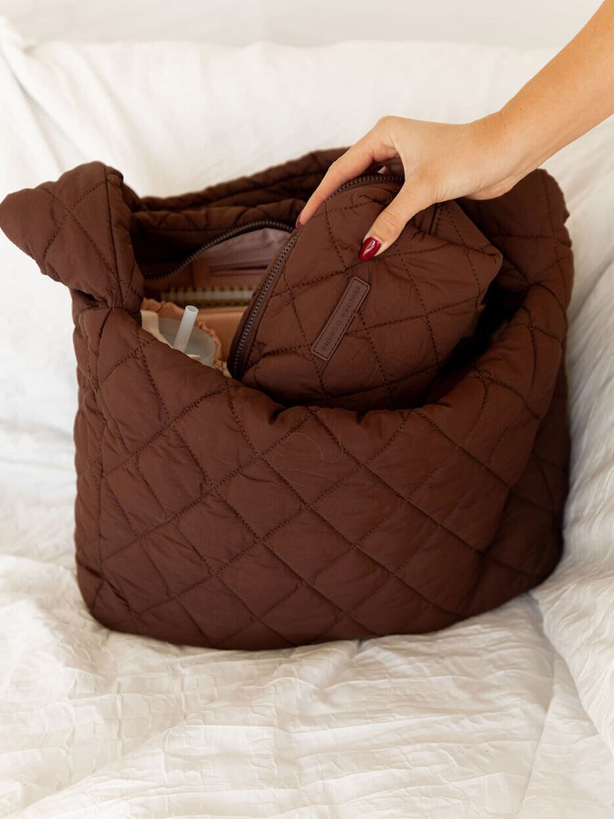 • Upgrade your travel essentials with our quilted cosmetic case. Keep your lotions and potions organized on-the-go in this roomy, quilted nylon case. With a top-zip closure, wipeable interior, and an internal jewelry tab that keeps your baubles under wraps, travelling never looked so cute. Crafted in washed nylon. Available in Black, Berry, Heritage Green, Leopard and Cream.