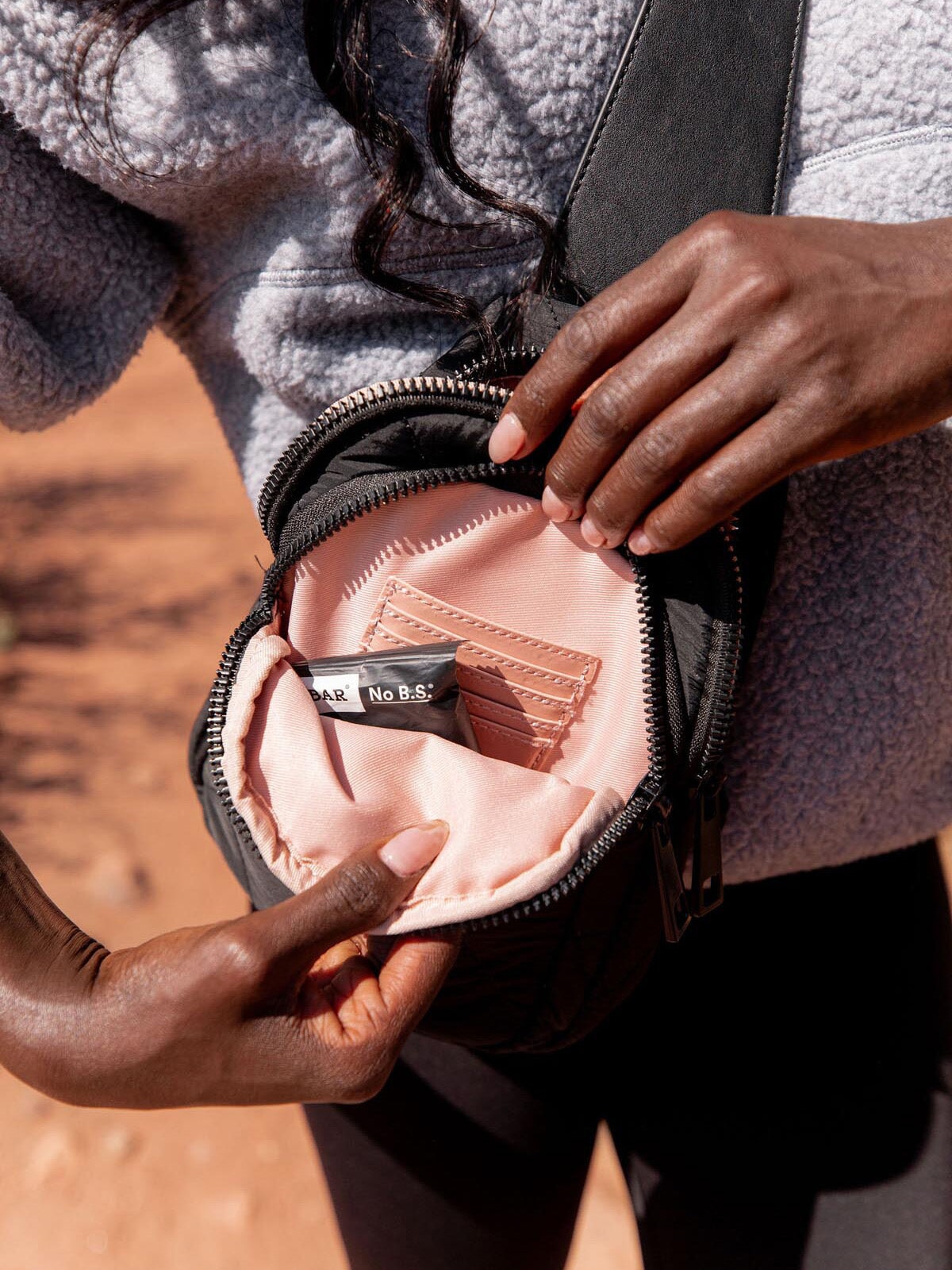 You asked, we answered: hands-free convenience and versatility in a more sleek package! We optimized the storage space of this smaller sling bag so you can still carry all your necessities, minus the bulk. Our dual zipper compartments keep everything safe and sealed, and the adjustable bottom strap clasp lets you choose your best side. Crafted in washed nylon.