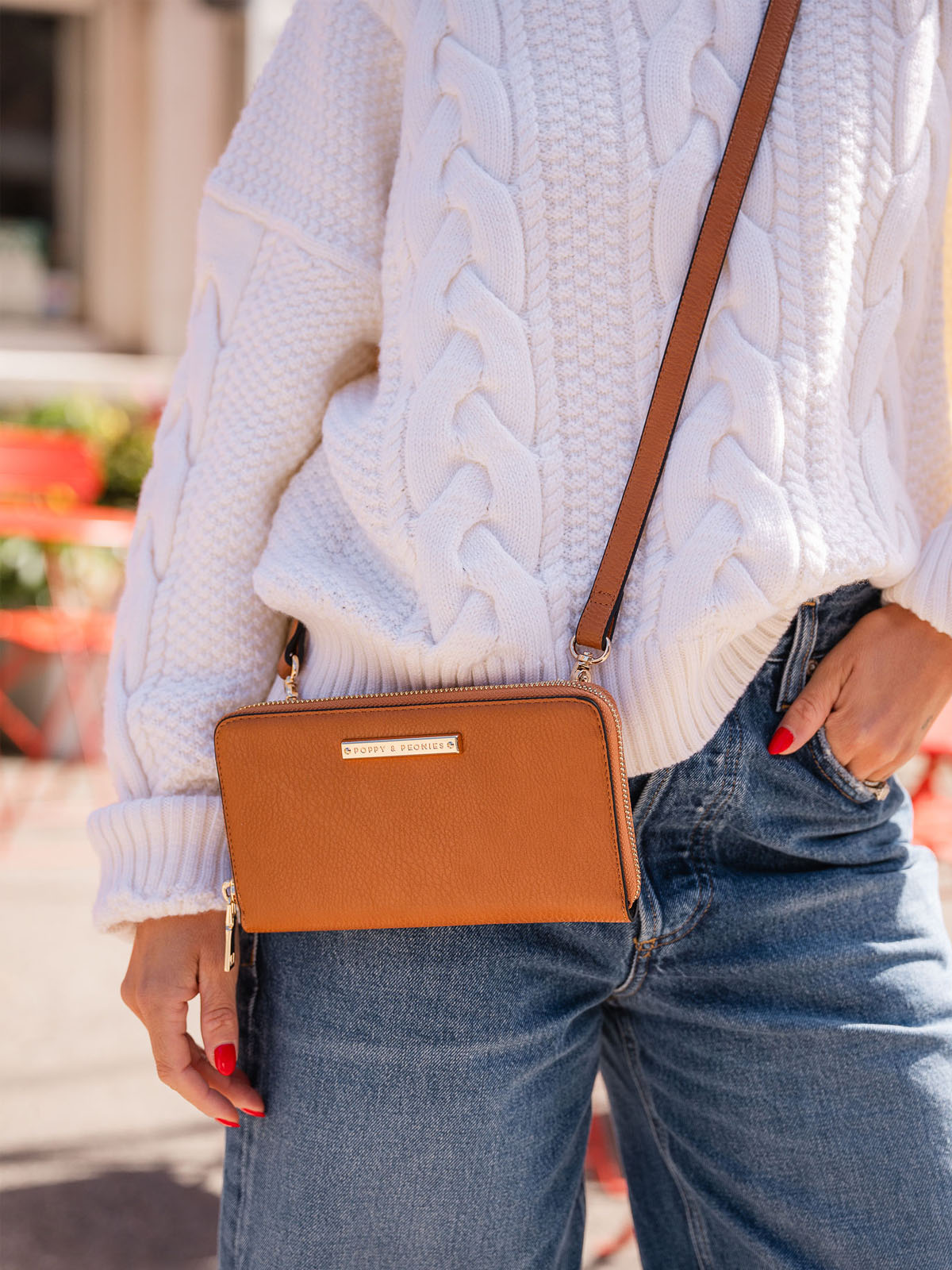 • Removable wristlet and crossbody strap
